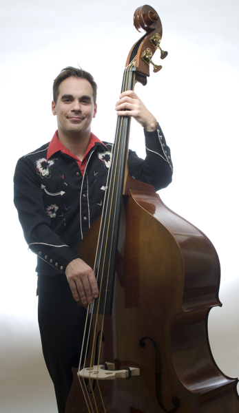 The first song we played with upright bass was Elvis Presley's "All Shook Up"... Man, that walking bass line sounded great and very authentic. It was also during this time that Brad had introduced me to the Sun Records of Elvis Presley and more importantly his upright bassist Bill Black via the Dorsey Brothers Stage Show footage. For someone that had been brought up playing Mozart and Beethoven in the orchestra you can understand my curiosity in Bill Black's slapped bass technique. It was raw, energetic, and rhythmic plus he added the comedic element to the band; a true performer. Somebody once told me that your instrument and the way you play it are an extension of your personality, well I could definitely identify with the "doghouse" bass and the way Bill Black thumped it. Throughout high school we forged ahead in a more rockabilly direction learning most of the Elvis Presley fifties catalog which Brad had been singing since he was a kid and adding other material like Chuck Berry, Little Richard, and Eddie Cochran tunes into the mix.